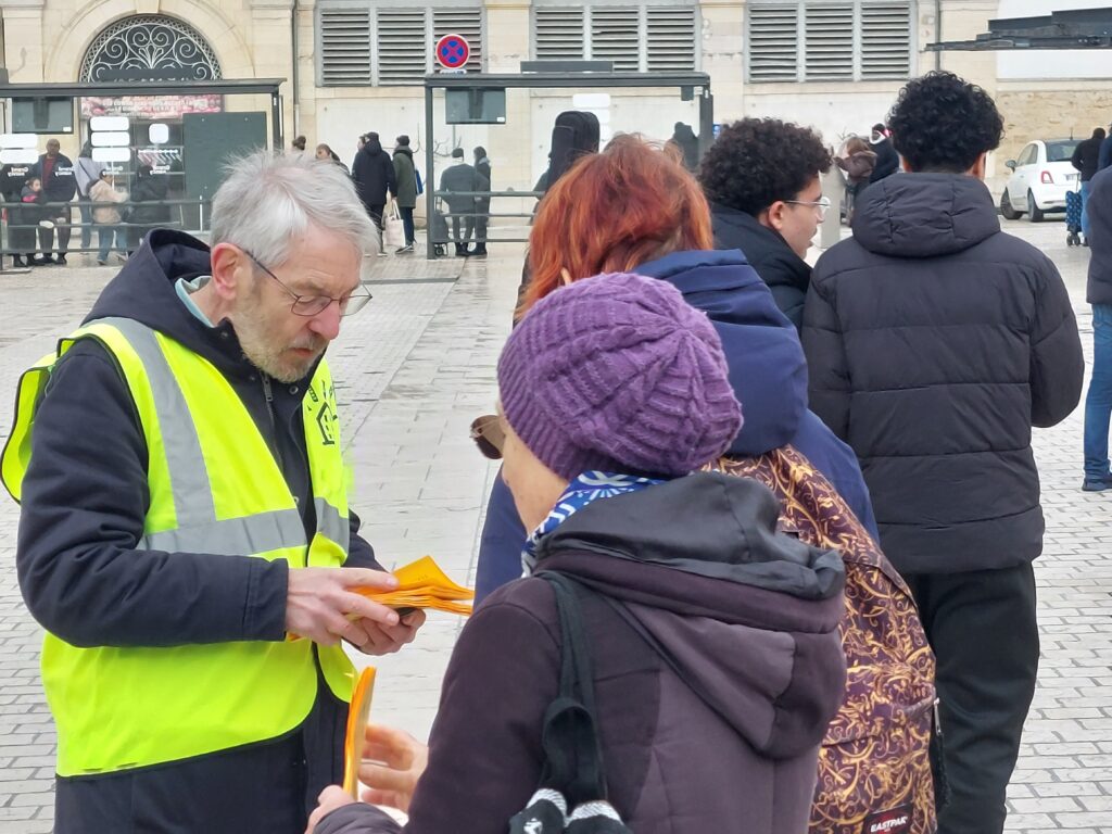 Le mardi 31 mars devant notre local au 10 rue de Lisbonne à Vandoeuvre, en allant à la rencontre des familles.